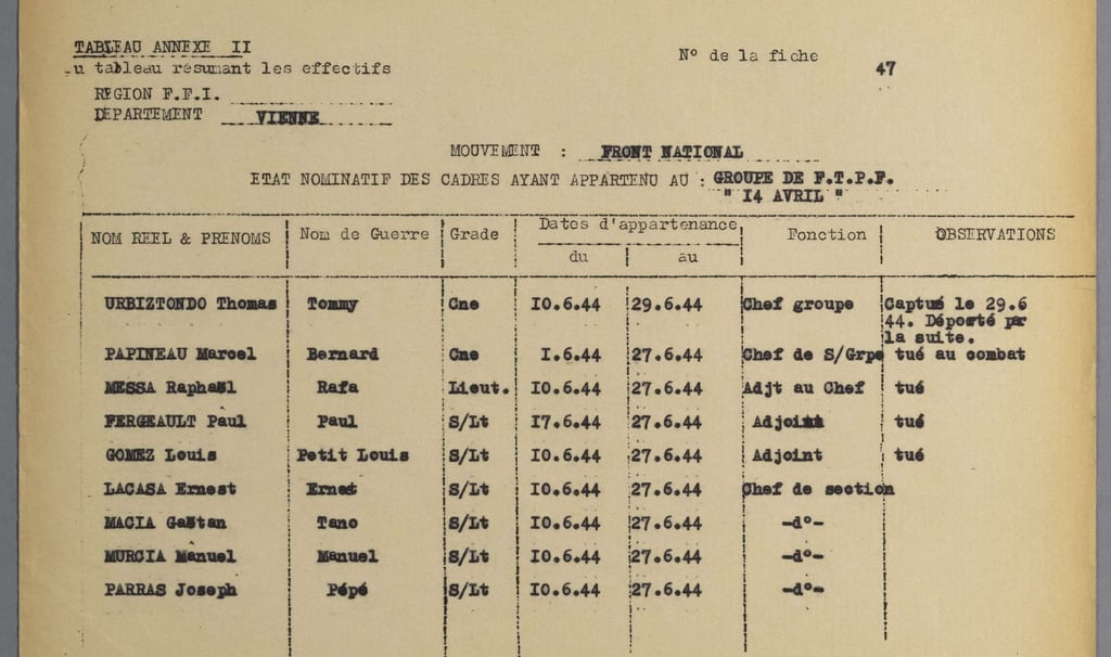 Allí, Tomás Urbiztondo Barber, maestro y delineante valenciano, reunió a un pequeño grupo de internos con una idea fija: escapar y volver a luchar. El contacto con la Resistencia exterior —a través del comandante Christian y bajo la coordinación del coronel Ledoux— permitió preparar la evasión. El 10 de junio de 1944, el plan se ejecutó. Decenas de hombres cruzaron el perímetro del campo y se internaron en el bosque. Aquel grupo, reforzado por combatientes franceses, adoptó un nombre que era toda una declaración: “14 Avril”, en homenaje al día en que se proclamó la República española.