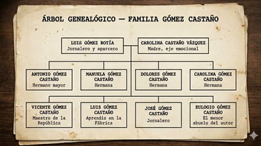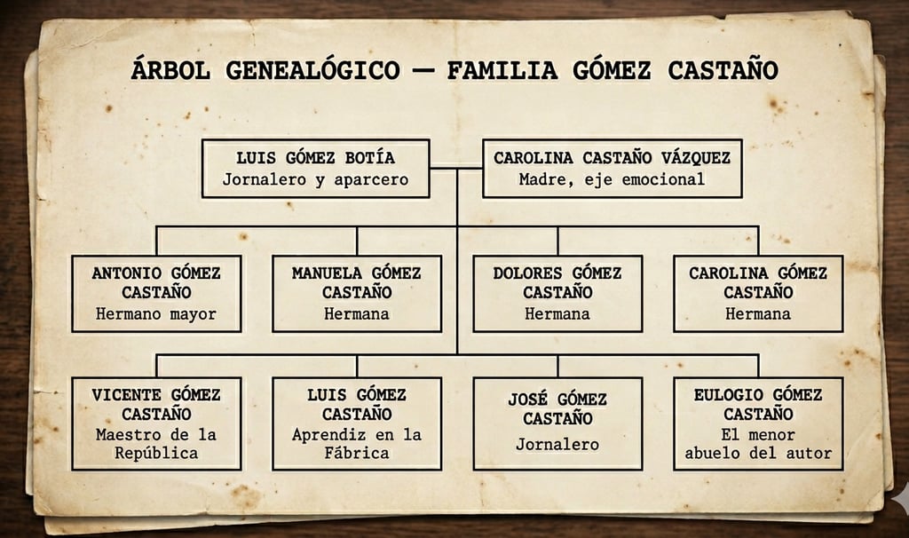 Luis Gómez Botía, jornalero y aparcero, conocía bien ese lenguaje. Su vida transcurría entre la tierra y el agua, entre la obligación y la esperanza. No era un hombre de grandes discursos, pero sí de una constancia que dejaba huella. Carolina Castaño Vázquez, su esposa, sostenía la casa con una mezcla de firmeza y ternura que aún resuena en la memoria familiar. Era el eje emocional, la que mantenía el equilibrio cuando la vida se inclinaba demasiado hacia un lado. En torno a ellos crecieron ocho hijos que, sin saberlo, serían testigos de un tiempo que estaba a punto de fracturarse.
